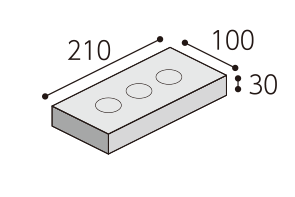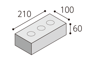 三ツ孔レンガ![]() *=サンドクッション 目地巾/2mm 210×100×60・Φ28 | * 48本/m² | ※本/ケース(※) | ||